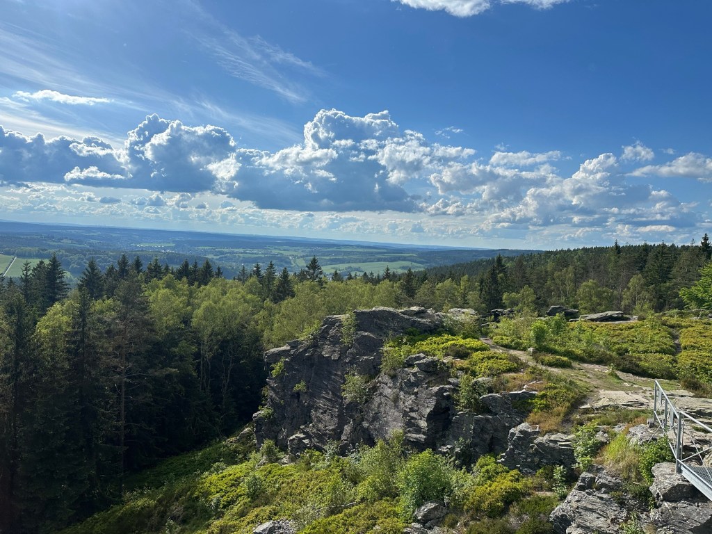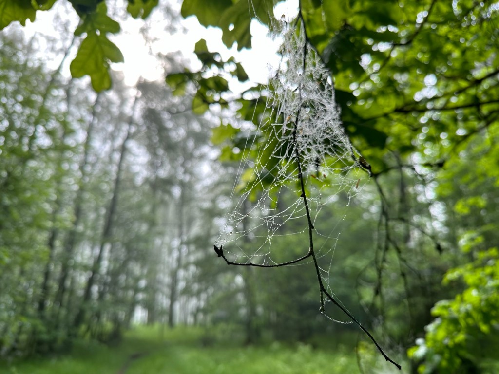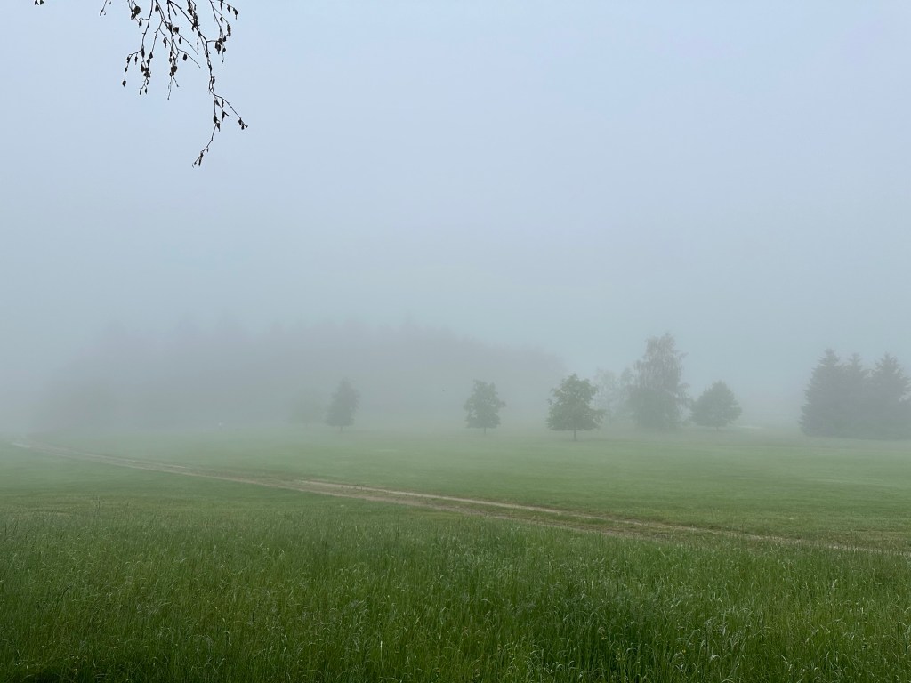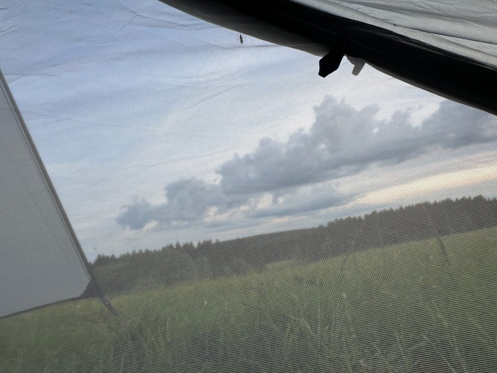 Ráno jsme dle mého očekávání vstali se sluníčkem a od 6 už šlapeme lesem směr Výhledy. Ty nás tam však nečekají, jen mlha co nás provází skrz melancholickou krajinu příhraničí až do Německa. V Česku už je zpátky sluníčko a před polednem jsme u auta zpět v Plesné kde nadšeně na sluníčku sundavám mokré boty a ponožky. Poté si dáváme oběd, následuje hodinové loučení a pokračuji sama. V autě jsem si vzala filtr abych pod Liščí horou zjistila, že mi chybí nástavec na láhev 😅 Vodu se mi však podaří přefiltrovat i tak, naštěstí. Vystoupám si na vyhlídku Vysoký Kámen (dolů to nechtěně vezmu kousek po zadku) a nastává hledání místa na spaní. To nacházím před rozcestím Nad Kuželkou s výhledem na západ slunce. Přichází první stavění stanu v terénu. Povedlo se! Uvařím si večeři, převleknu do pyžama a spát.