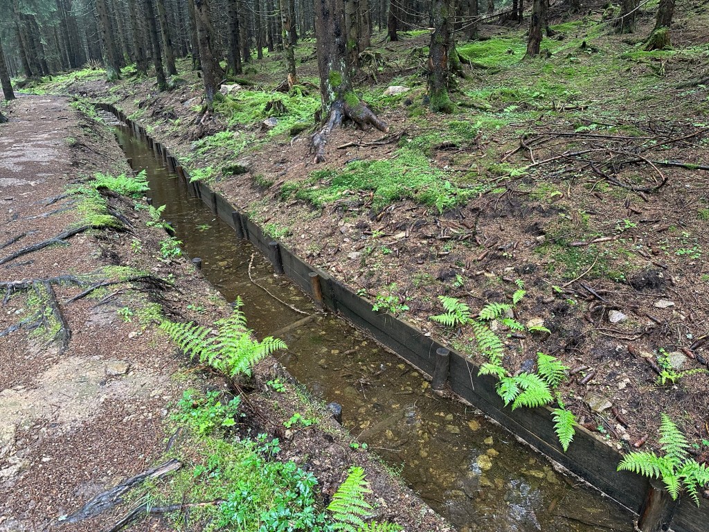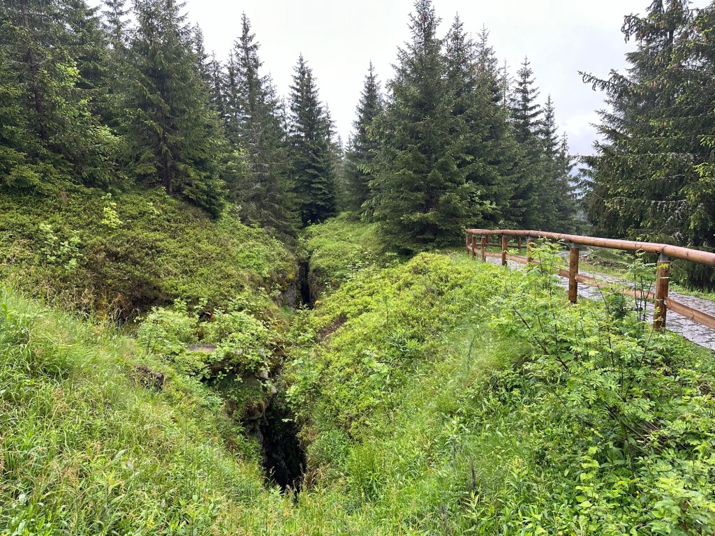 Podél Blatenského příkopu se dostávám k rozcestí a zahýbám k zavřenému občerstvení u Červené jámy (alespoň jsem tu kouzelnou chaloupku chtěla vidět).