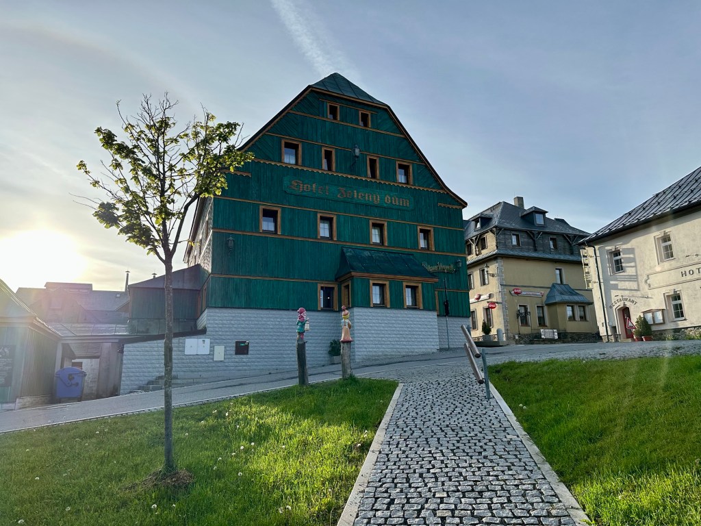 Vstávám tradičně okolo páté, pro změnu vyspána naprosto luxusně. Pension Barborka doporučuji! Po včerejším skoro relaxačním dni se už těším ven, snídaně, rychle sbalit (to mi moc nejde, jestli mám vše musím opakovaně kontrolovat ) a jde se. V Božím daru obdivuji baráčky, výstup k Neklidu si překvapivě užívám (opět krásné výhledy) a pomalu se přibližuji vrcholu Klínovce.