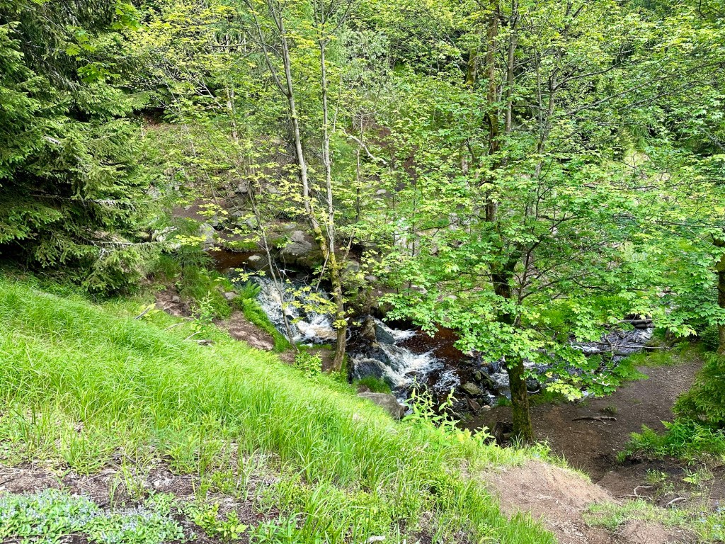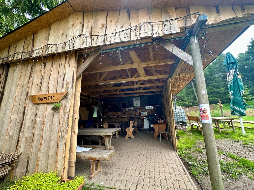 Ve Svahové mrknu na Samotoč (pokud pijete pivo tak se tam určitě stavte). Nakonci vesnice potkám dvě ukecané kozy. Chvíli se zdržím u Helenčiných vodopádů.