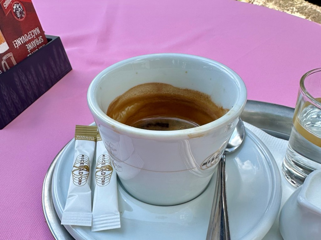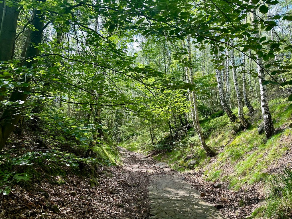 Dám si první dnešní klesání a opětovné stoupání k Mordovně. Přečtu si něco o místní historii. Pokračuji směr Petrovice kde mám v plánu kávu o oběd. Konečně dobrý kafe!