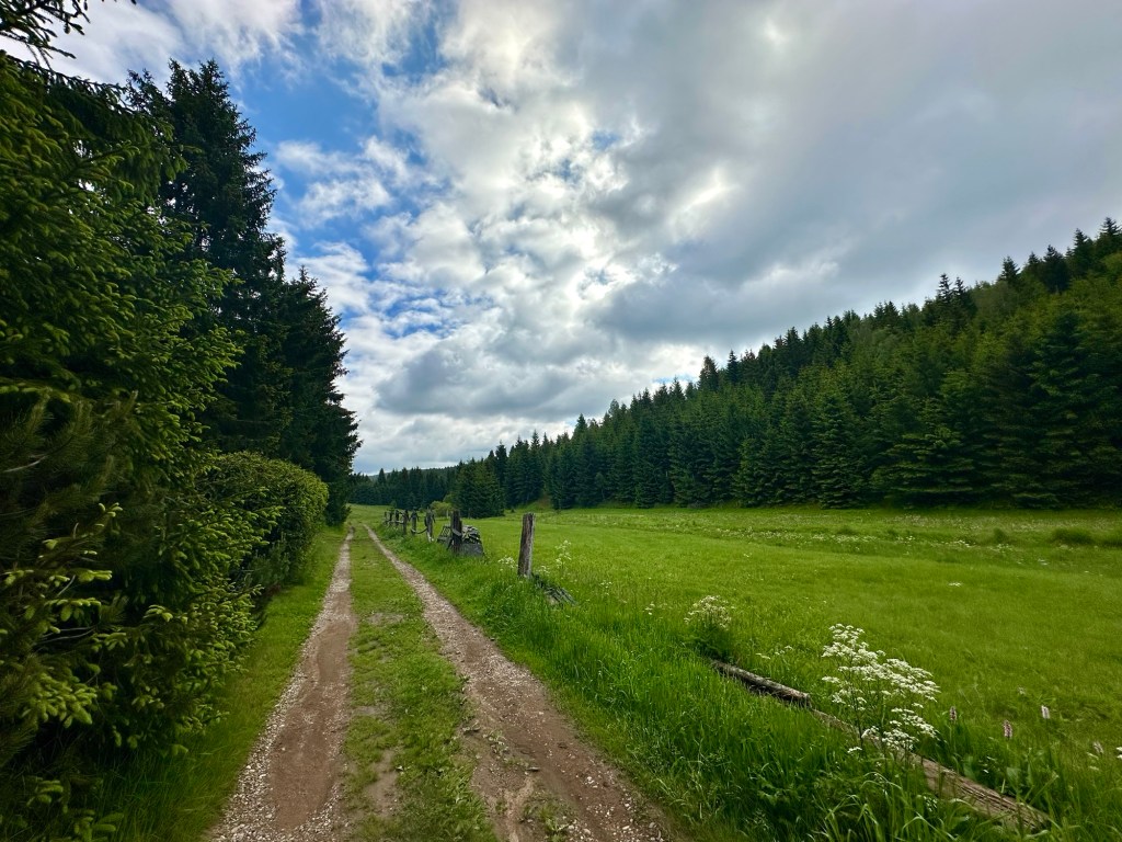 Celý den se střídá počasí a kdykoliv zastavím, že dám uschnout stan, začne na mne pršet. Naštěstí seženu ubytování v Adolfově, dnešní cíl je tedy jasný. Jen už jsem bez vody a míjím jen ošklivý bažinec a ten se mi filtrovat opravdu nechce. Žíznivě spěchám směr Komáří hůrka. Cestou po delší době potkám stezkaře, jde v proti směru a také celé. Jen na rozdíl ode mne je už za polovinou. Vodu kupuji hned v občerstvení dole, zláká mě nápis káva. Raději se ptám zda je to presso, ze zrnkové kávy. Prý ano. Horší kafe jsem nepila.. Ale kofein je kofein(: Na hůrce alespoň obhlédnu výhledy a spěchám dále, kousek vedle se honí mračna a tohle není místo kde bych chtěla zažít bouřku. Cesta k rozcestí u Rudného vrchu je nádherná! Ty výhledy.. Docházím na ubytování (samozřejmě že už nepršelo), dám sušit stan, sprchu, vyprat. Chvíli posedím se sympatickou paní majitelkou a jdu spát.