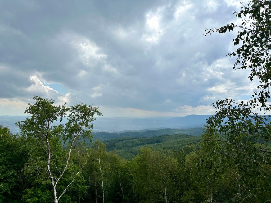 Přesně v jednu hodinu začne pršet tak jen vystrčím ruku do deště a zapnu na stanu zip ať na mě neprší. Naštěstí usnu celkem rychle a probouzím se s lepší náladou než předchozí dny. Skrz Nové město se dostanu do Mordoru, vylezu si zatím nejprudší stoupání k Cínovci kde mám v plánu oběd a kávu.