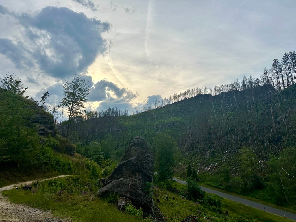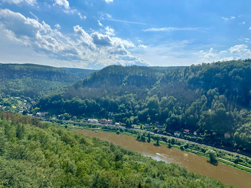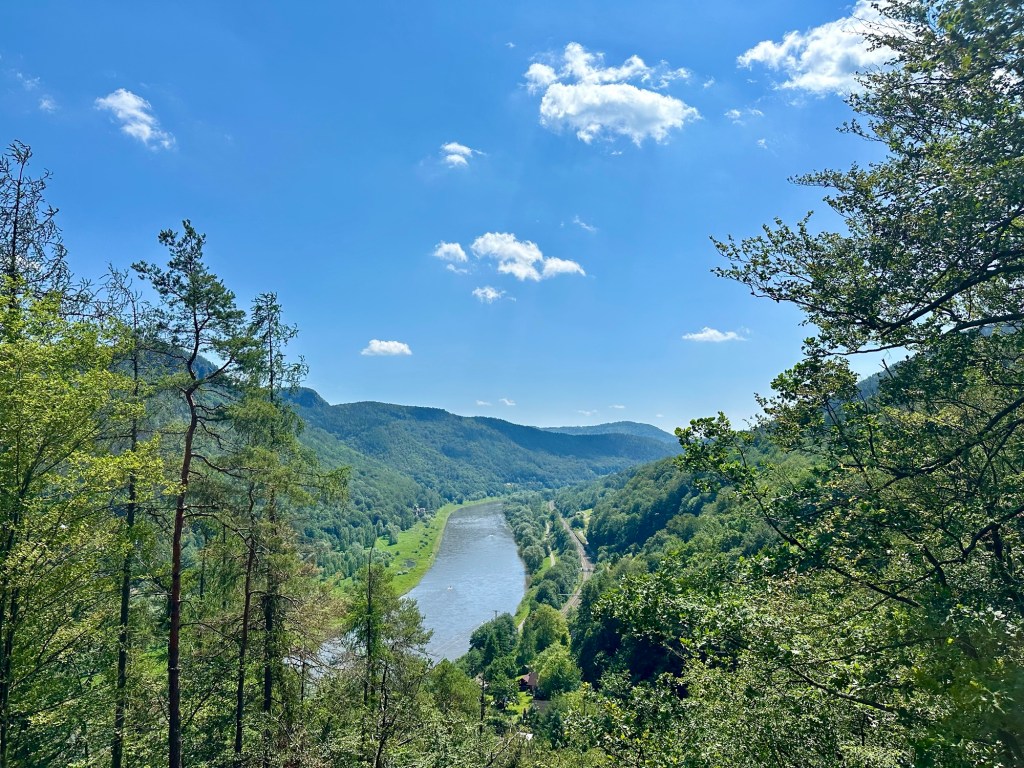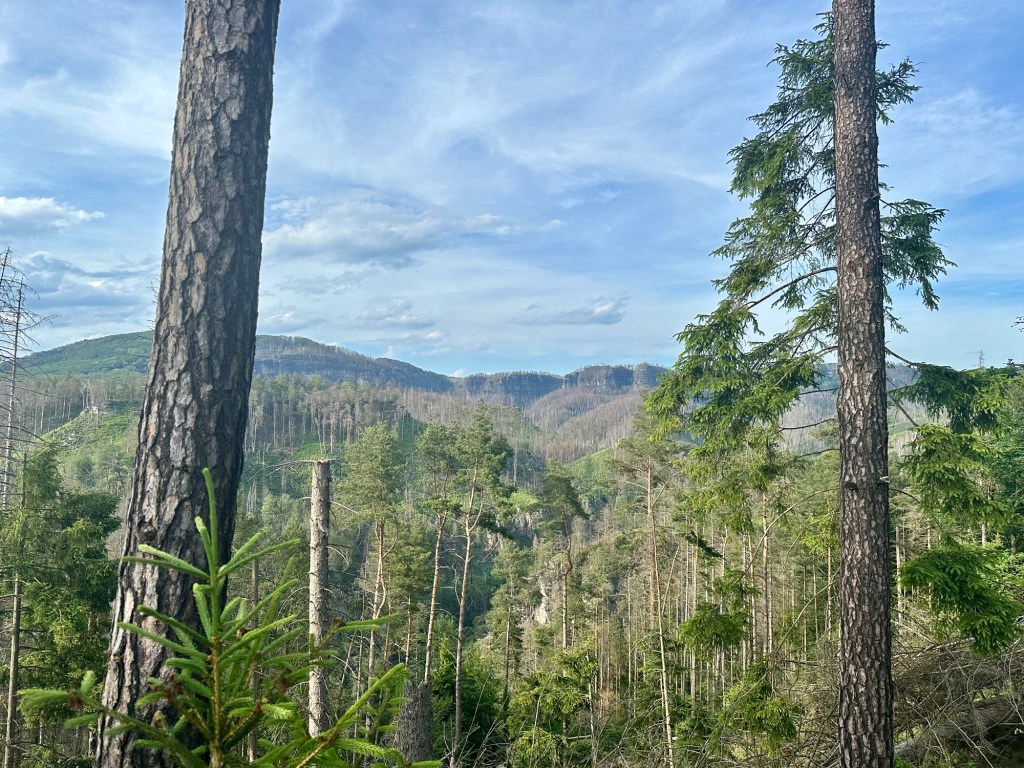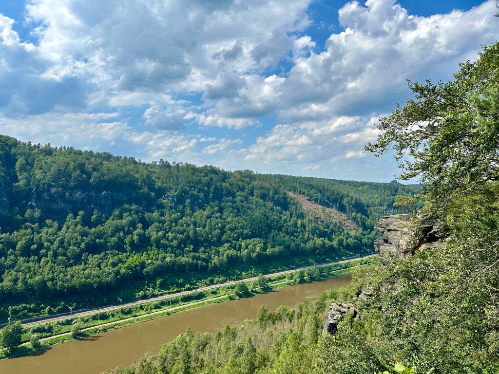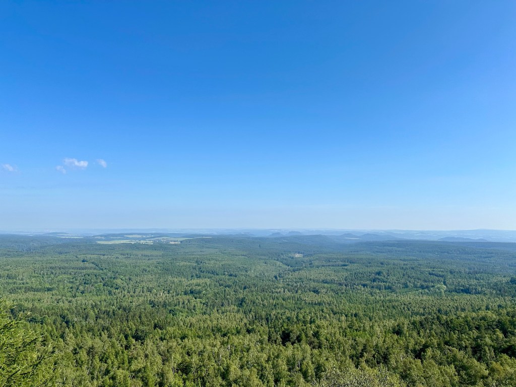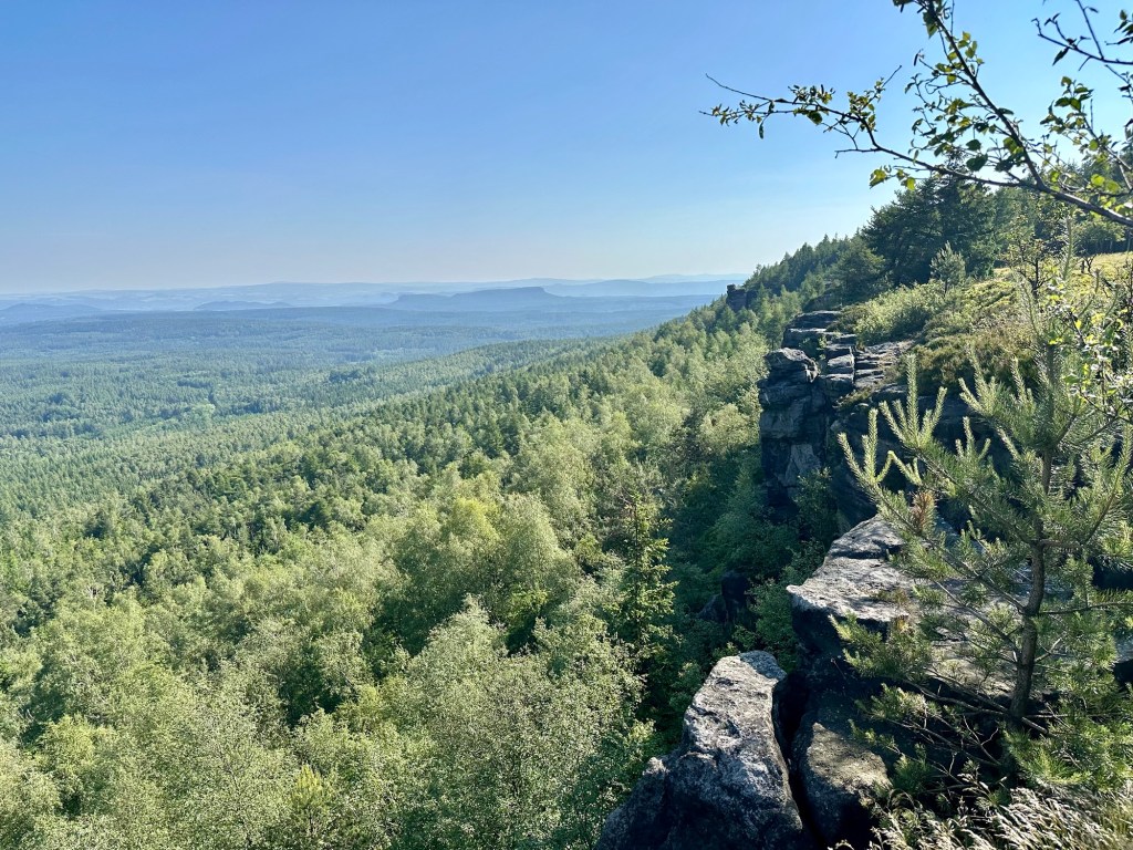 Budím se už okolo páté, ale ještě chvíli si užívám čisté postele a vycházím až po sedmé. Vyšlápnu si pár výškových metrů směr Děčínský Sněžník. Tady se zdržím neplánovaně dlouho a obcházím všechny možné výhledy.