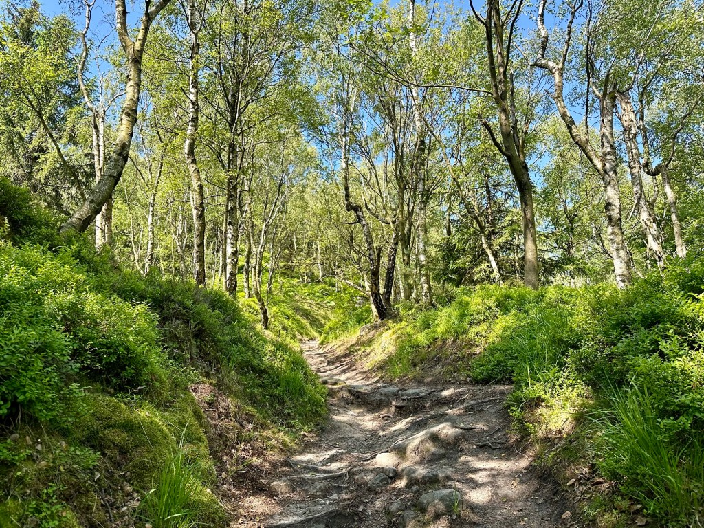 Projdu březovým lesem a po zelené směr Maxičky. Trochu naivně jsem doufala v kafe. Na výběr mám turka nebo rozpustné, volím vodu a jdu na sestup k Čertově vodě. Stěžovala jsem si prve na náročný sestup? Tohle bylo ještě horší.