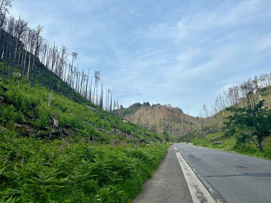 Opráším svou angličtinu s německými cyklistou, potkám dva stezkaře co jdou kousek v protisměru a cíleně vynechám rozhlednu. Kolena mi nějak nedávají sestupy po schodech a výhledy to byly skvělé i tak.