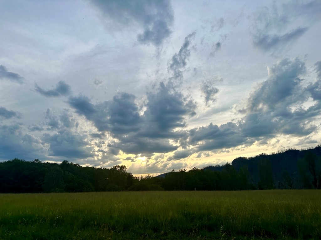 Jsem rozhodnuta dojít na Mezní Louku, musím trochu zrychlit. Seběhnu do Hřenska, výběhu z Hřenska, vynechám Pravčickou bránu (ani jsem tam nechtěla, nemám ráda turisticky exponovaná místa) a pokračuji po žluté. Pomalu zapadá sluníčko a nikde nikdo, je lehce chladněji a docela si to tu užívám.