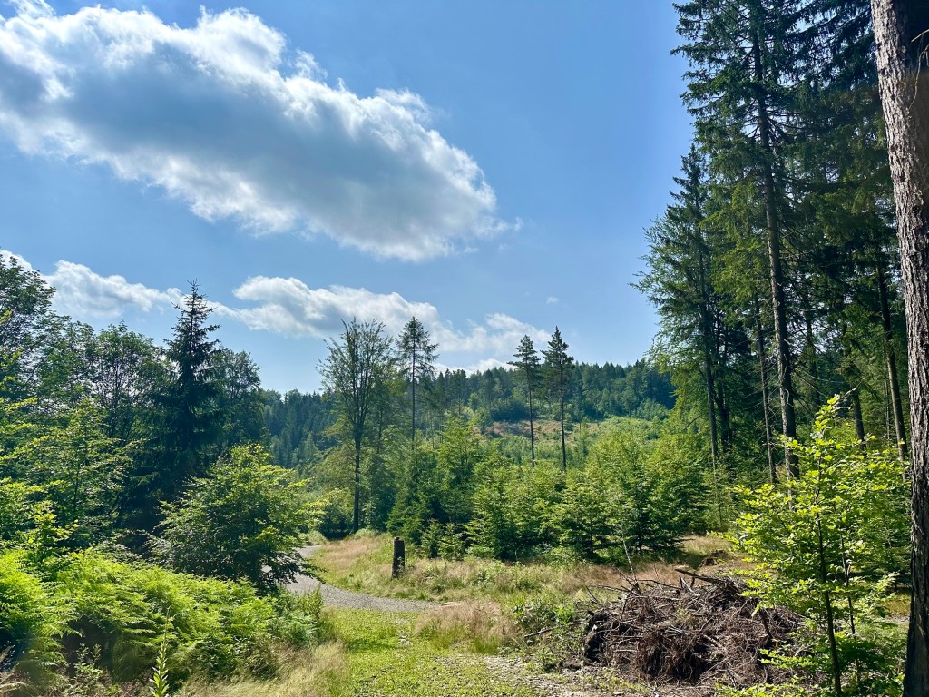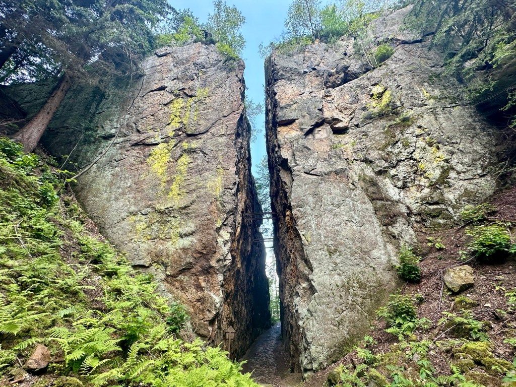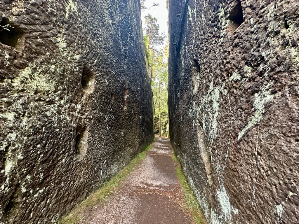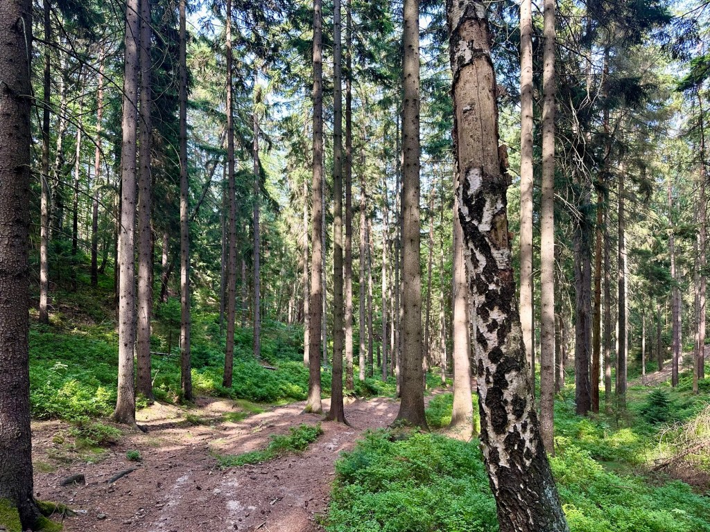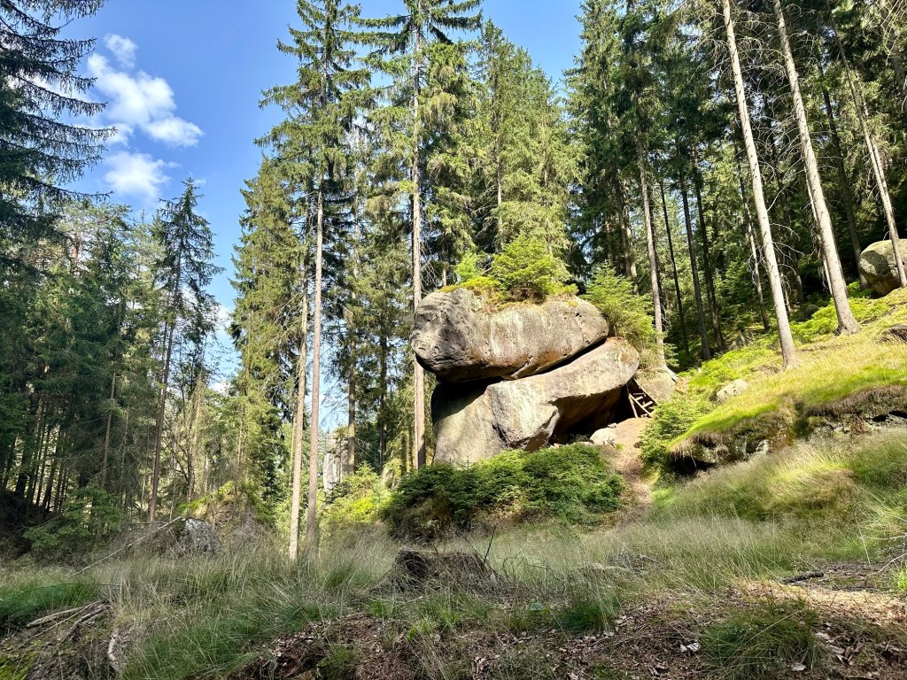 Vylezu ke Krkavčím kamenům, na výhled u varhan. Poté k bývalému lomu Schwarzes Loch, hezké místo. Jsem ráda, že jsem včera zůstala na ubytování, už od německých hranic je všude terén, na kterém by se mi v dešti (po dešti) šlo hodně špatně.