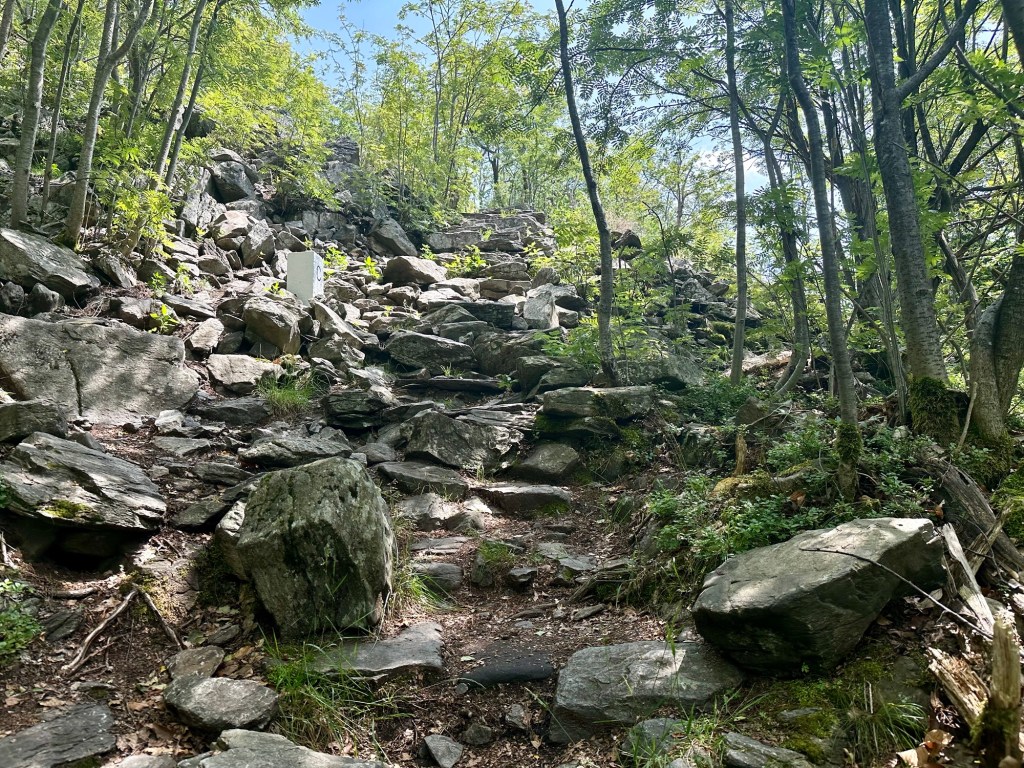 Projdu Petrovice a hurá zpátky do lesa, kde mi je nejlépe. Před přístřeškem Pod Loupežnickým vrchem mě začne bolet břicho tak chvíli posedím. Nejspíš je to hlady, moc jsem toho dnes nesnědla, nacpu do sebe tyčku. Lehce se to zlepší, jde se dále. Snad někde najdu nějakou vodu. Využívám každé sezení, sním další kousek tyčky.
