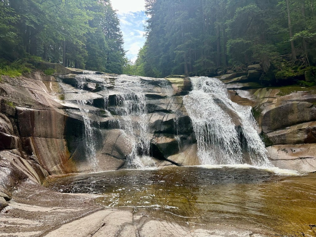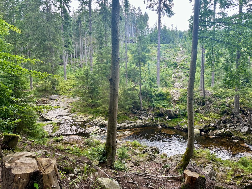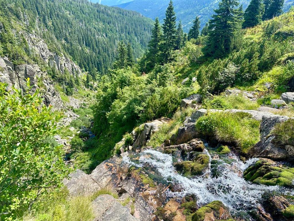 V devět vyrážím do mých vysněných Krkonoš. Hned na začátek mírné stoupání po asfaltu k Mumlavskému vodopádu, kde udělám pár rychlých fotek a pryč od lidí. Nechápu proč jsou jen tady když o pár metrů výše je Mumlava taky nádherná, ale sem už nejdou. Tu cestu podél ní si užívám, krása.
