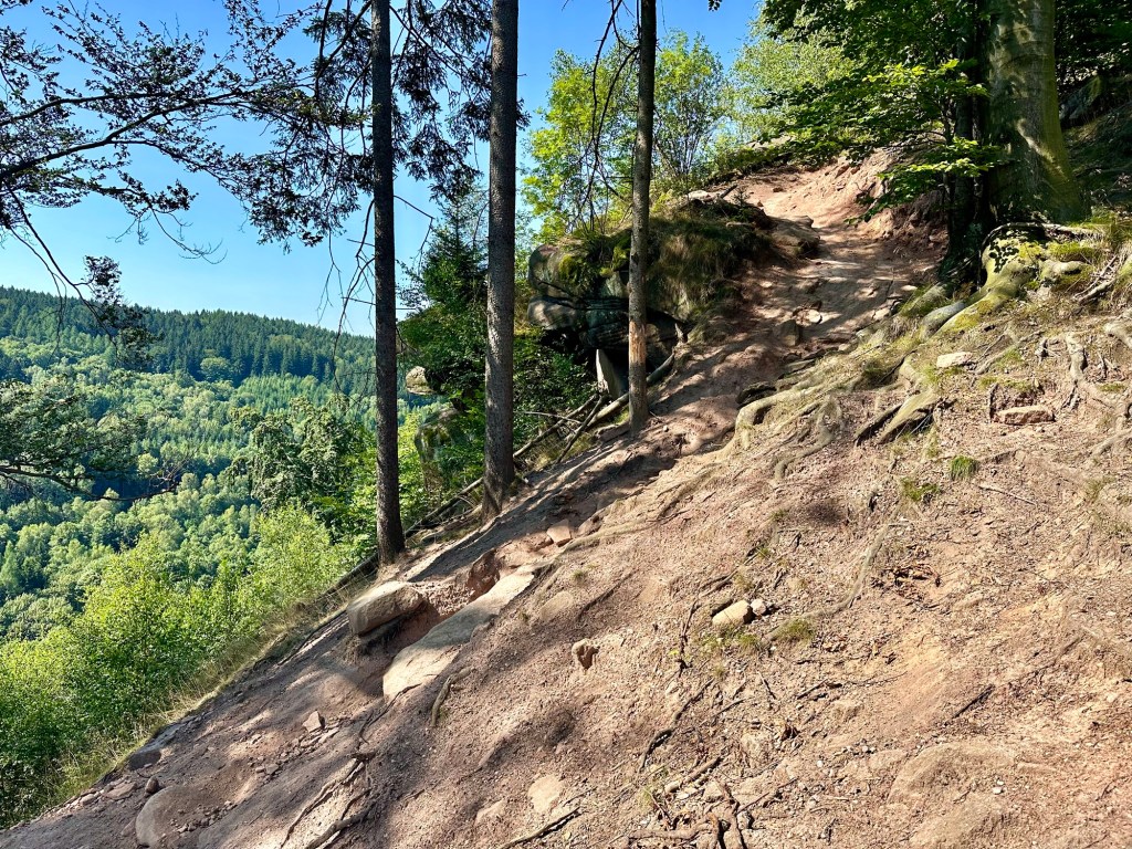 Hned na začátek mě čeká docela nepříjemny sestup, samé kamení a úzká pěšinka.