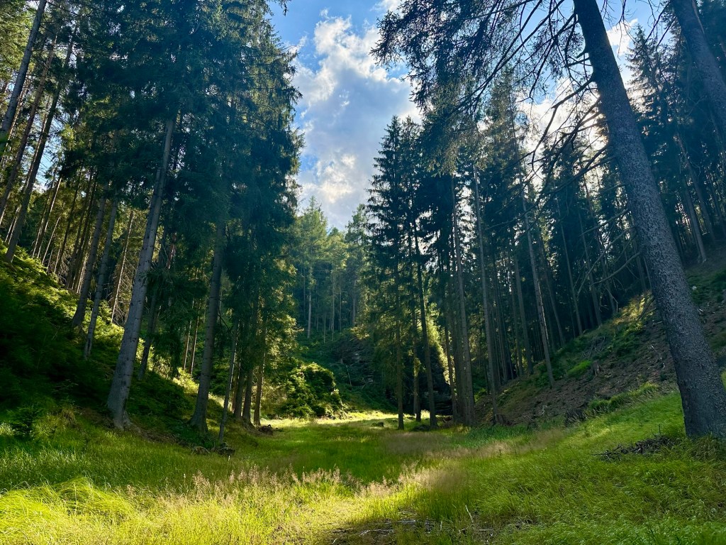Cesta dál kopíruje hranice, alespoň se díky hraničním kamenům dá snáze odhadovat cesta.