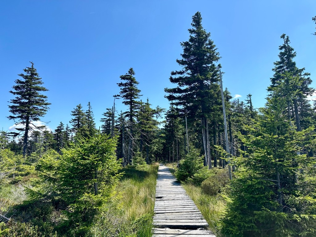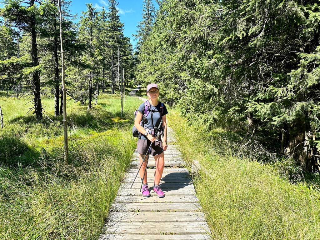 Definitivně mu uteču při výstupu na Malý Jezerník. Za rozcestím Slatě mě překvapí šířka dřevěného chodníku, je to spíše dálnice.