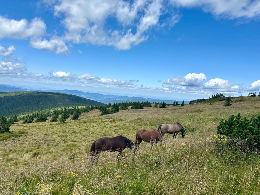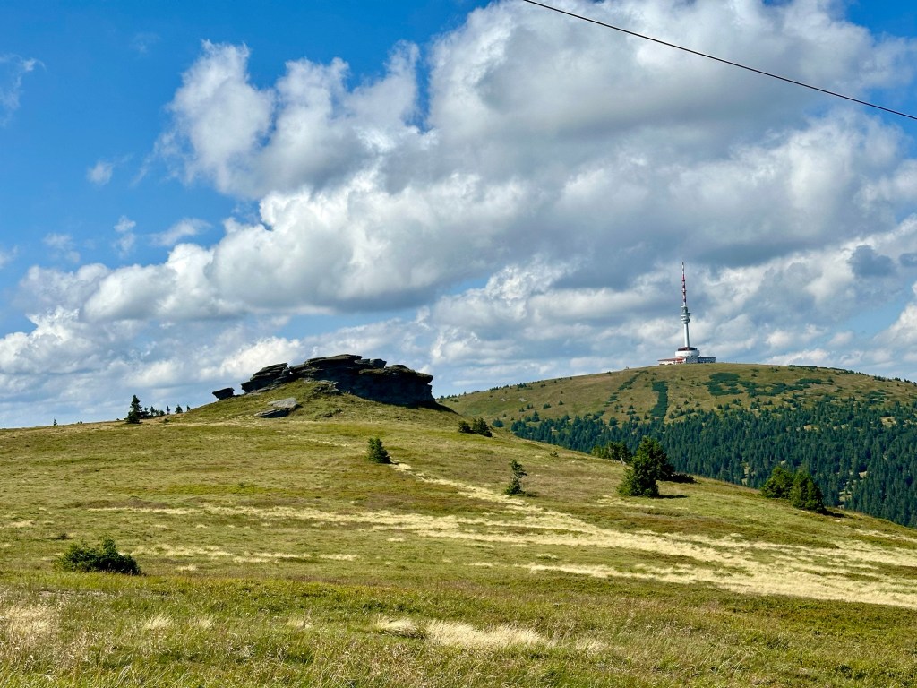 Minu Švýcárnu a vylezu si na Praděd. Dám si zde kafíčko a borůvkové knedlíky (zatím nejlepší co jsem měla). Zaplatím si výtah na vyhlídkovou věž.