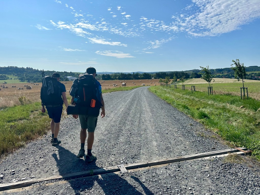 Cestou do Dobešova se mi odlepí tejpy, sundám je z obou noh. Do kopce mě achilovky bolí znatelně více. Dáme si kratší pauzu a hurá do ubytování v Loučkách.