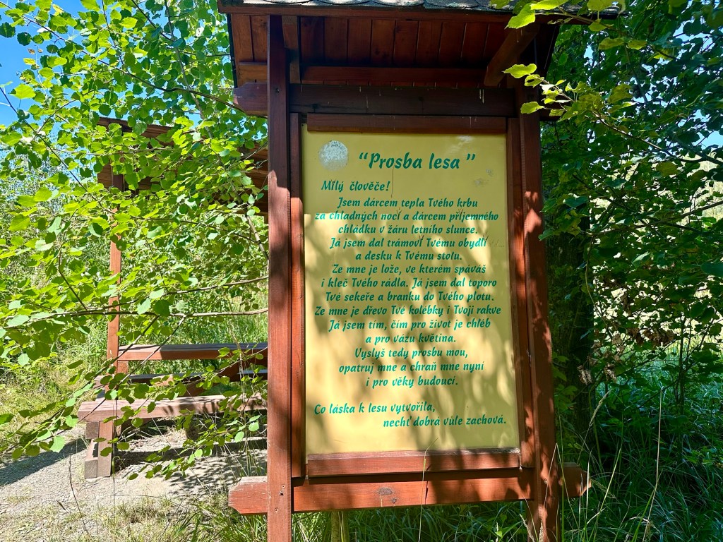 Překvapivě se mi jde docela dobře, jdeme hezkou NS Břidlicivá stezka. Mají tu krásné dřevěné, bílé natřené přístřešky.