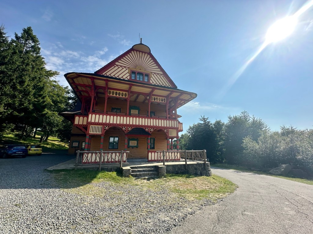 Hned na začátek lehký výstup, na Tanečnici, dolů do sedla a výstup na Čertův Mlýn. Nahoře si dám rychlou pauzu. Pokračuji nekonečným sestupem do Čeledné. V restauraci je svatba (hudbu jsem slyšela už hodně z dálky v lese), ale kafe a limonádu mi udělají.
