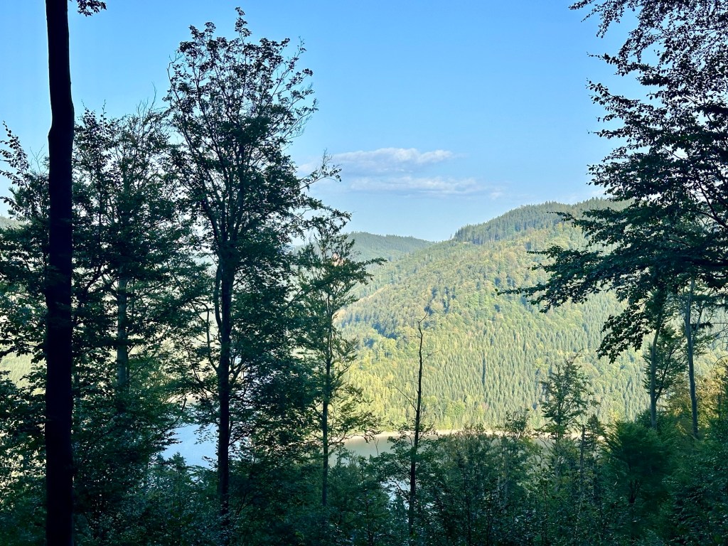 Projdu po přehradě, lehce nahoru a Krkavčí stezkou do hotelu. Ta je z kopce, což už vůbec nedávám, nedokážu si představit že budu zítra pokračovat. Vážně přemýšlím o návratu domů.