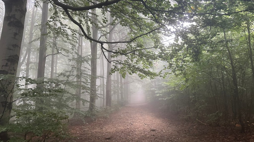 Tohle pochmourné podzimní počasí si po těch vedrech užívám. Mlha je čím dál hustší, okolí o to melancholičtější (a strasidelnější) a já ve svém živlu.